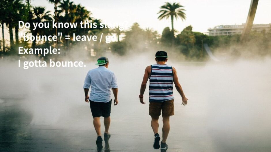 「bounce」のような表現は、まとめて覚えると会話で使いやすくなります。ネイティブがよく使うスラングは「英語スラング一覧50選」で一覧で紹介しているので、あわせてチェックしてみてください。
