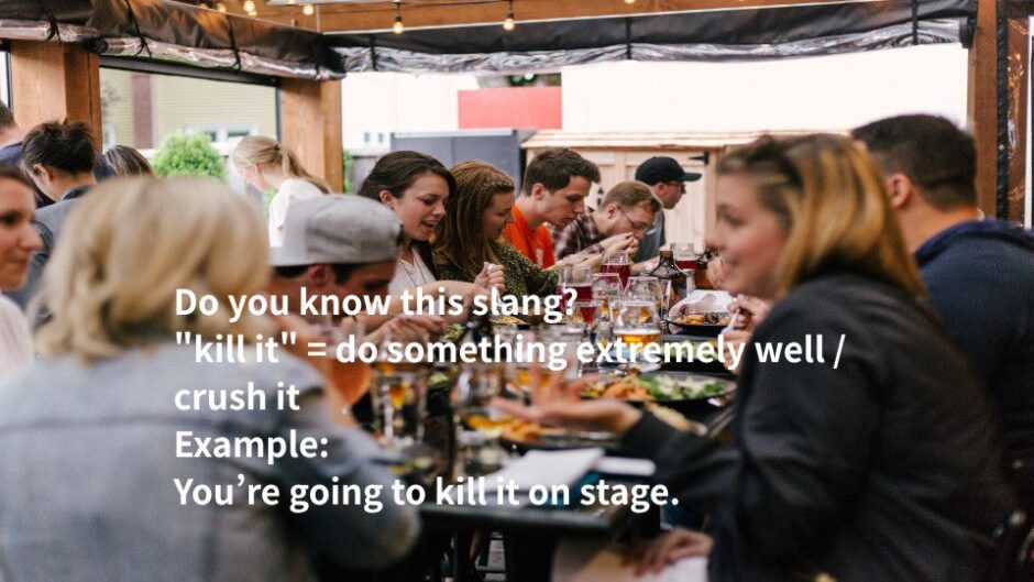 「kill it」のような表現は、まとめて覚えると会話で使いやすくなります。ネイティブがよく使うスラングは