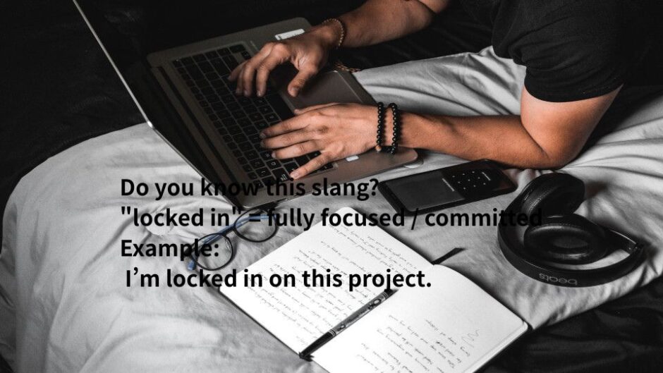 「locked in」のような表現は、まとめて覚えると会話で使いやすくなります。ネイティブがよく使うスラングは
