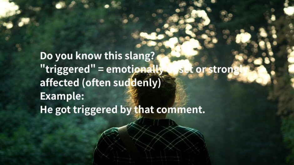 「triggered」のような表現は、まとめて覚えると会話で使いやすくなります。ネイティブがよく使うスラングは